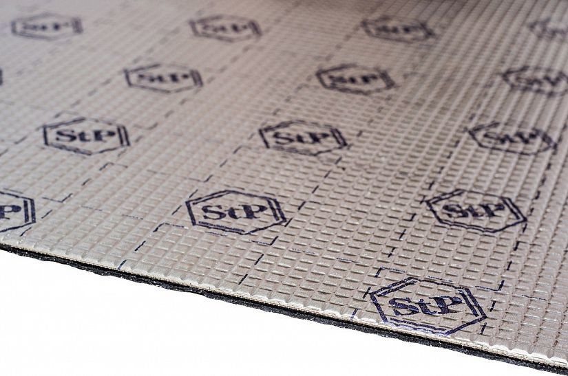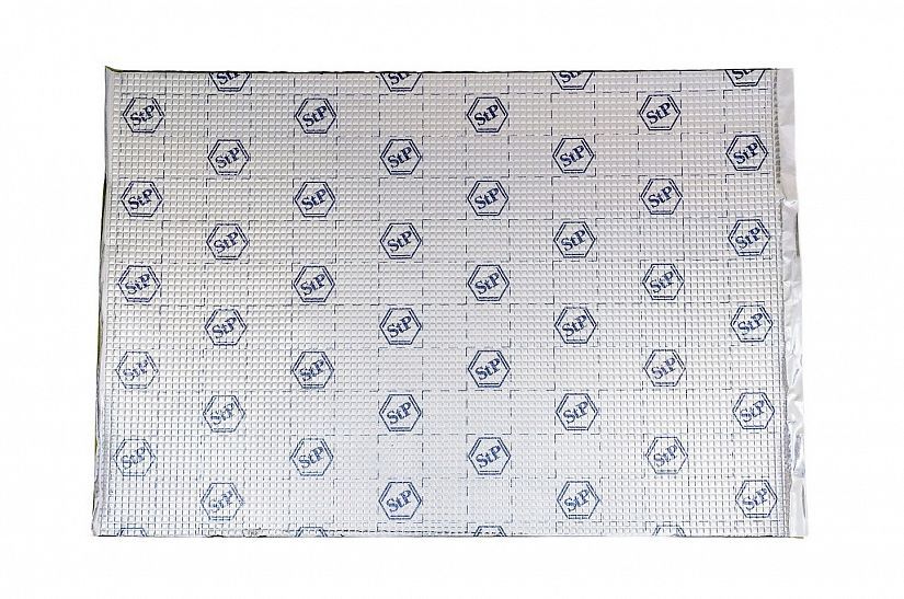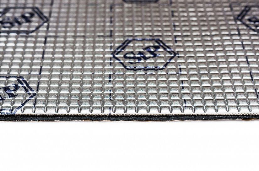 Самоклеящийся вибропоглощающий материал. Представляет собой трехслойную конструкцию, состоящую из лицевого слоя фольги кашированной, битумного слоя и липкого монтажного слоя на основе вибродемпфирующей мастики, защищенной антиадгезионной бумагой. Для монтажа требует дополнительного нагрева. Материал не впитывает влагу и не разлагается, обладает свойством герметика. Рекомендуется для применения в самых вибронагруженных зонах.