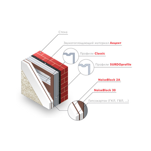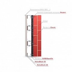 Монтаж к стене через систему профилей с относом 30-40 мм