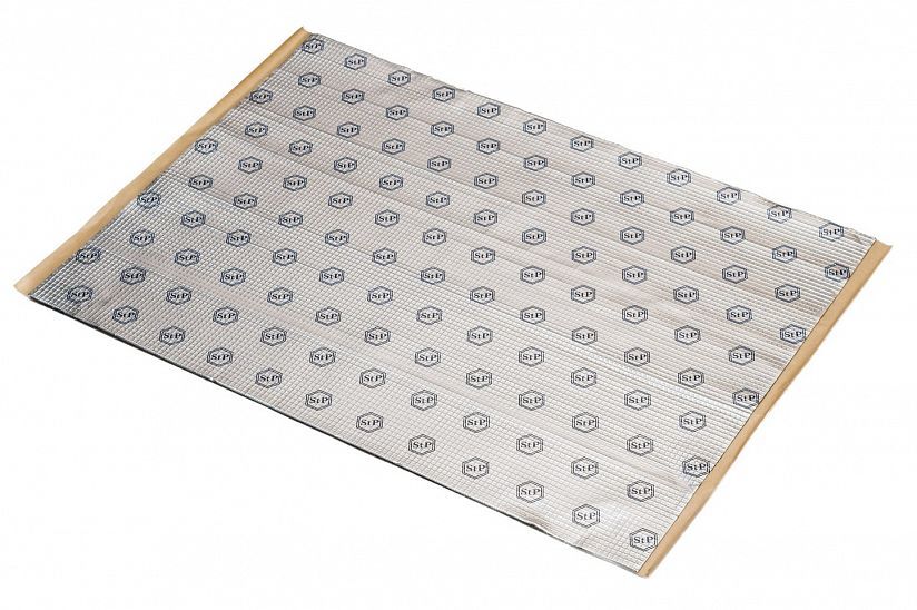 Самоклеящийся вибродемпфирующий материал, состоящий из алюминиевой фольги с тиснением и липкого полимерного слоя, защищенного антиадгезионной бумагой. Легко монтируется на неровные поверхности, не требует дополнительного нагрева при установке. Материал не впитывает влагу и не разлагается. Обладает свойством герметика. Температурный диапазон использования от -45 до +100°С. Допускается кратковременное воздействие температур до +190°С.