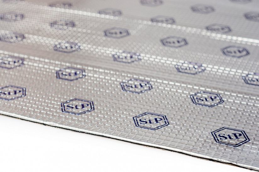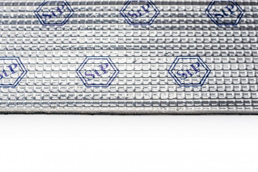 Самоклеящийся вибродемпфирующий материал, состоящий из алюминиевой фольги с тиснением и липкого полимерного слоя, защищенного антиадгезионной бумагой. Легко монтируется на неровные поверхности, не требует дополнительного нагрева при установке. Материал не впитывает влагу и не разлагается. Обладает свойством герметика. Температурный диапазон использования от -45 до +100°С. Допускается кратковременное воздействие температур до +190°С.